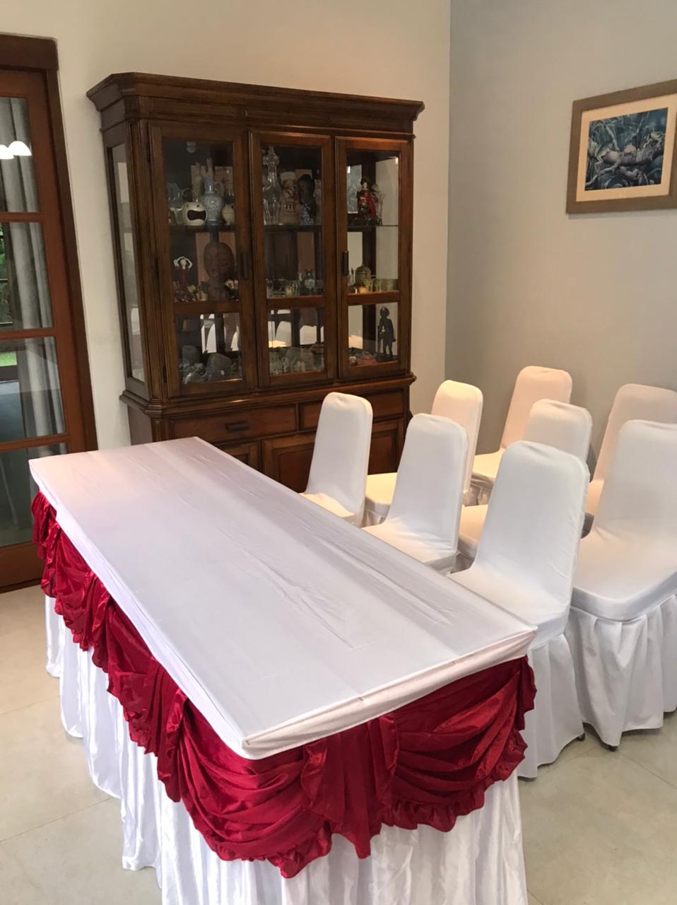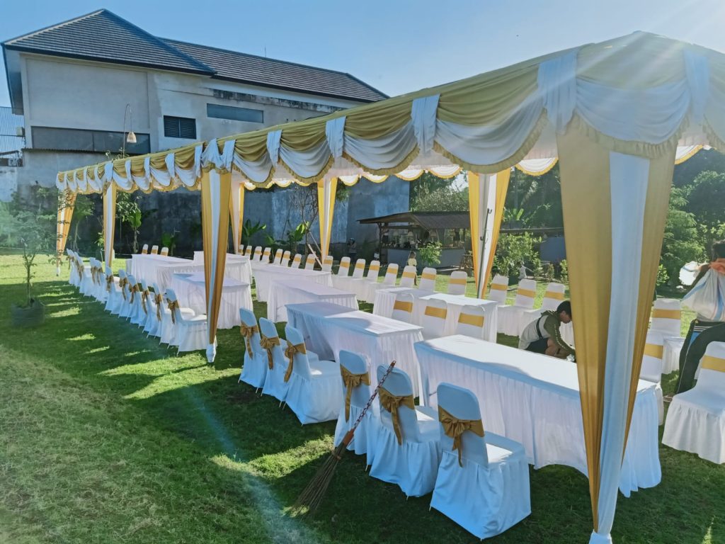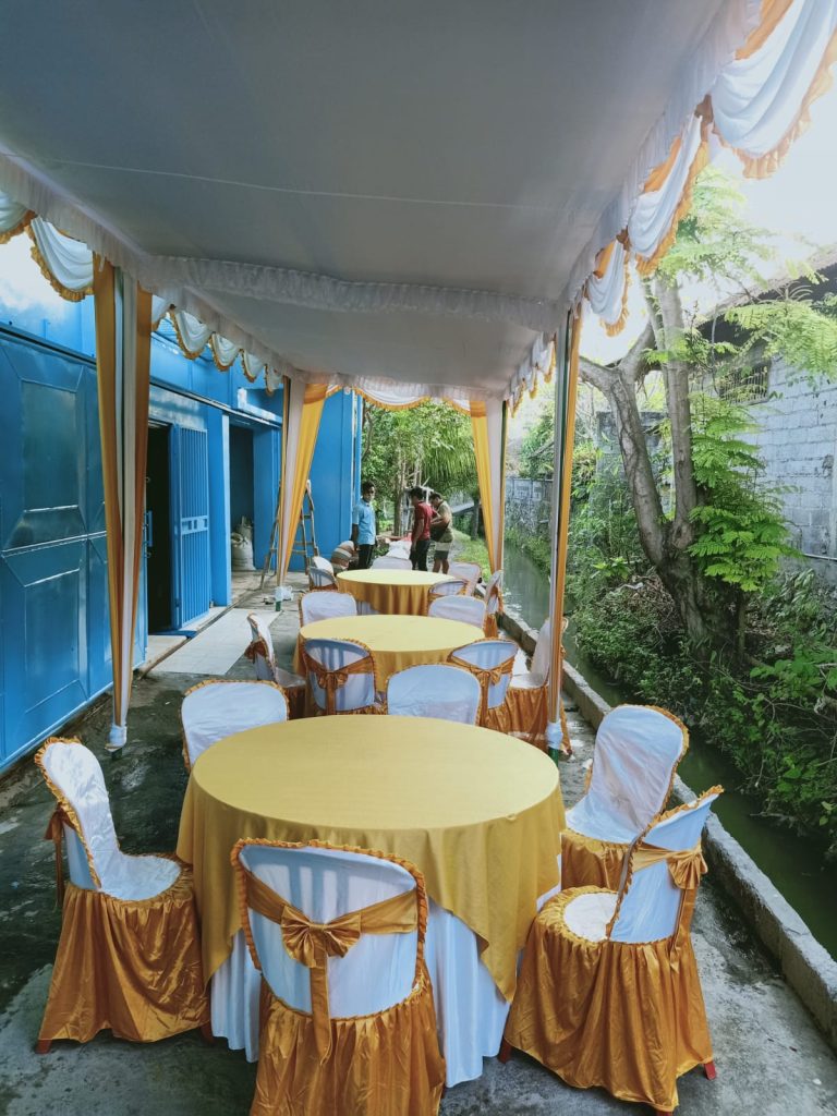 - Meja – Menyewakan meja bundar dan persegi, berikut taplak dan cover.